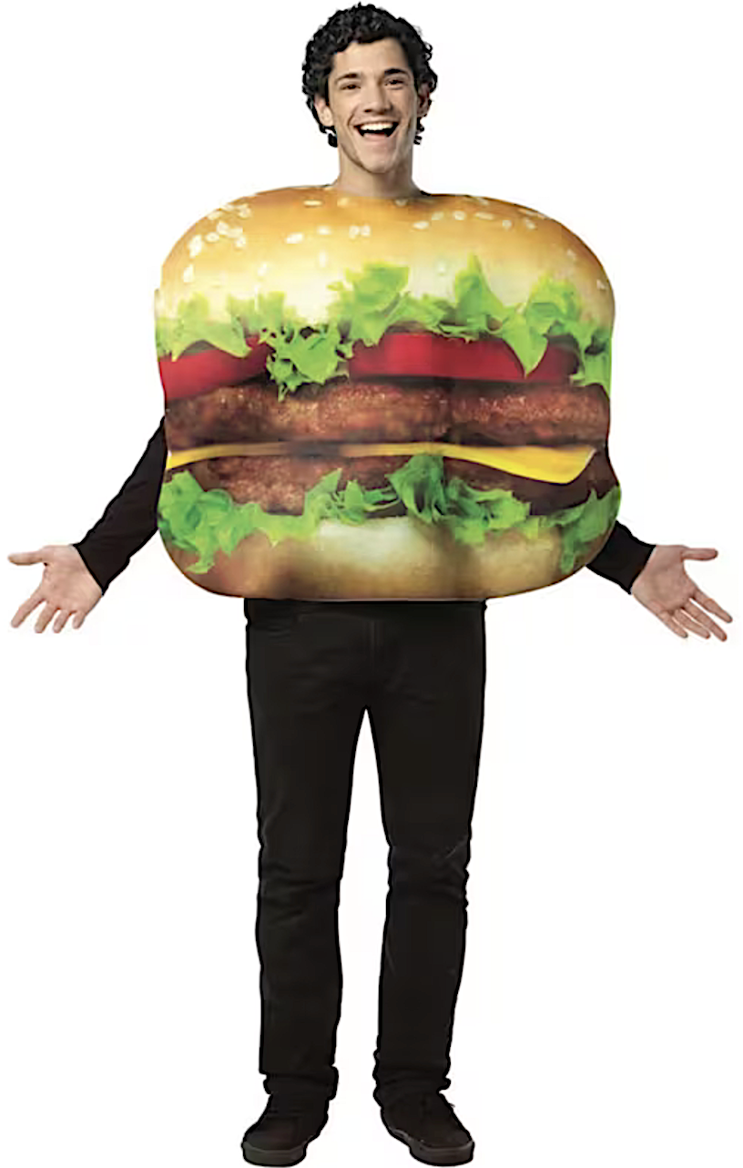 Be the talk of the Halloween party in this fun Hamburger Halloween costume! This burger costume looks just about good enough to eat!